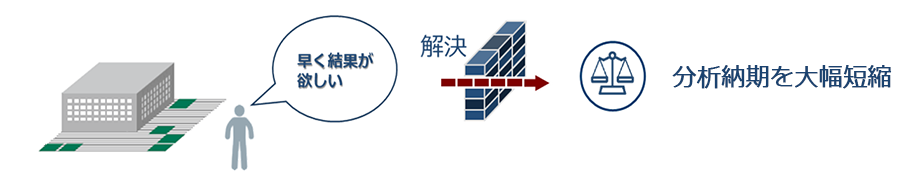 土壌環境リサーチャーズでは、徹底的に分析業務を効率化することにより、検体分析にかかる日数を大幅に削減しています。