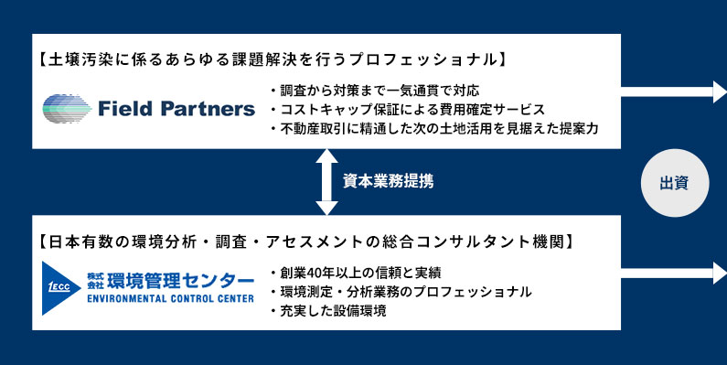 当社では、分析・調査業務に係るサービス向上を実現するために、資本業務提携関係にある株式会社環境管理センター(以下、「環境管理センター」と言う)との合弁にて、「株式会社土壌環境リサーチャーズ」を運営しています。