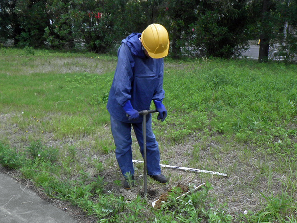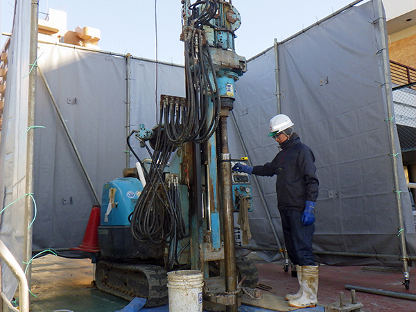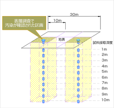ボーリング調査を実施することにより、深さ方向の汚染範囲を把握することが調査の目的です。
