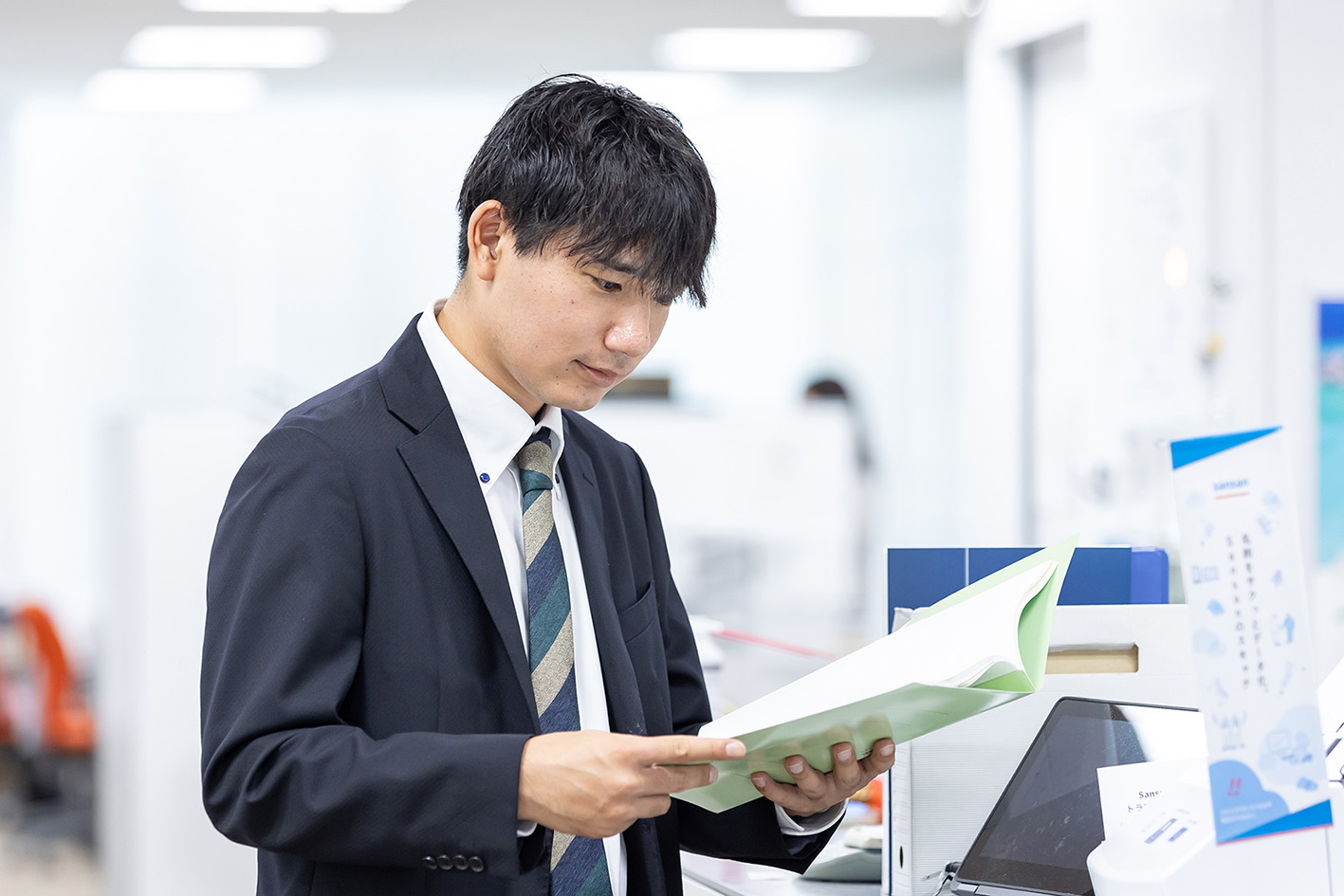 土壌の調査依頼に対し、まず計画を立案するのですが、その段階がいちばん時間と労力を要するところです。お客様のご要望や事業計画をしっかり把握したうえで、最適な調査計画を考えていきます。私が担当するお客様は土地のオーナー様が多いので、どのような調査が必要かということをわかりやすく伝えなければなりません。もし汚染が見つかった場合は積算部に依頼し、最適な対策方法とともに、これくらいの金額と工期がかかりますということを伝えます。